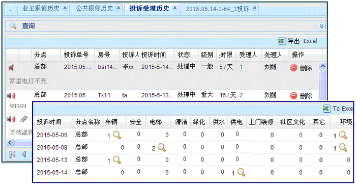 咨询投诉、服务建议、维修报障、装修申请…等工单登记、派工,工作流管理。支持电脑和微信派单,短信通知。