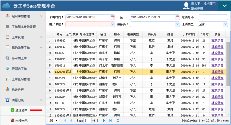 租用联傲云坐席或联傲iCall呼叫中心系统。来电自动弹出电话号码、号码归属地、历史工单等信息。 通话自动录音,录音和工单绑定。点击呼叫。短信通知。