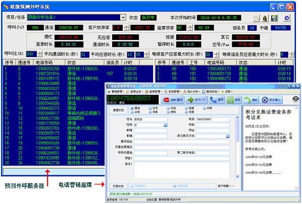 联傲预测外呼引擎(CPDE)支持专业预测外呼,座席效率可提升到85%以上,极大地提高话务员的外呼效率。联傲专业电话营销系统支持业务生成,可自定义清单、业务表单、统计报表格式,满足各类呼出型电话营销业务需要。