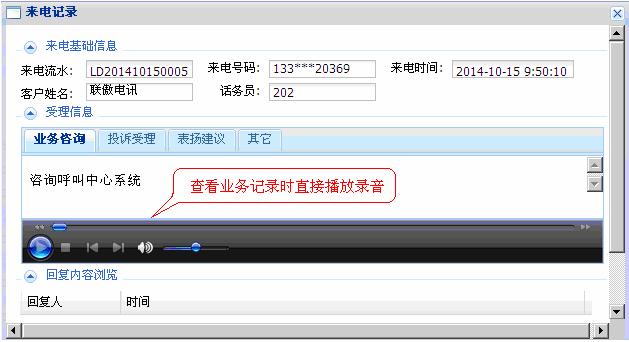 查看或处理业务时可同步回放当时的通话录音。