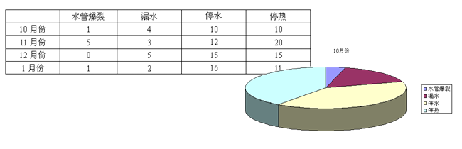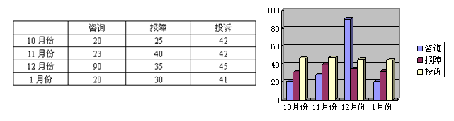 - 例如供热期间咨询、报障、投诉总体数据及报表如图示: