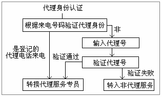 提供综合金融服务的企业其业务种类较多,话务员被分为不同的小组,分别为不同的业务提供服务,或为不同区域代理提供电话服务。来电请求人工服务时,系统根据来电号码或代理号对代理进行身份认证,将认证通过的代理根据其代理的业务类别或所在区域将来电准确地分配给设置的话务组或服务专员。